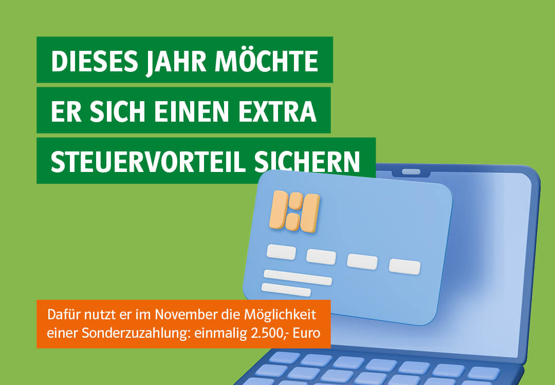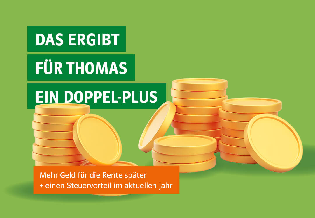 So profitieren Sie gleich doppelt: Einerseits ergänzen Sie die laufenden Beitragszahlungen und damit Ihr angespartes Rentenvermögen und andererseits optimieren Sie Ihre Steuerlast für das aktuelle Kalenderjahr.