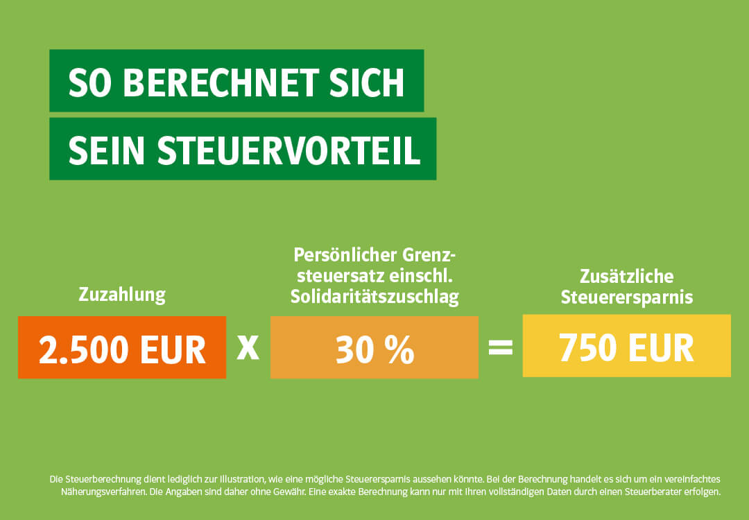 So profitieren Sie gleich doppelt: Einerseits ergänzen Sie die laufenden Beitragszahlungen und damit Ihr angespartes Rentenvermögen und andererseits optimieren Sie Ihre Steuerlast für das aktuelle Kalenderjahr.